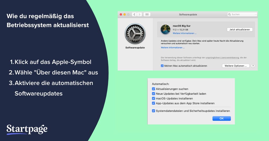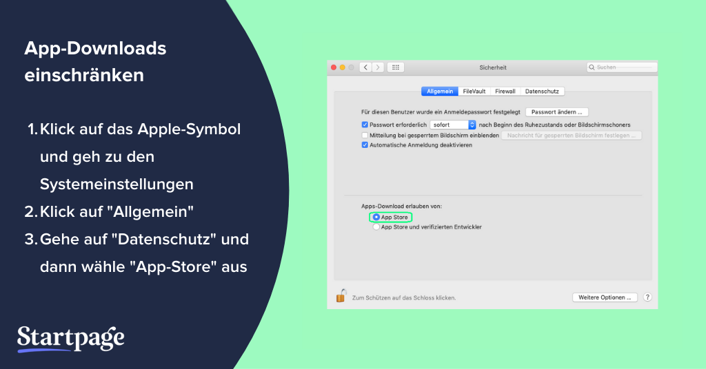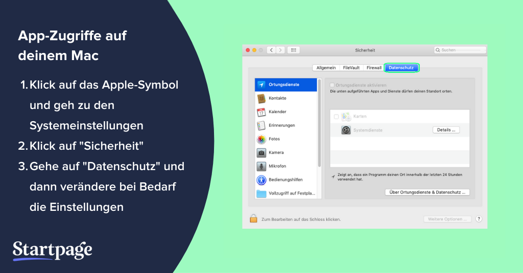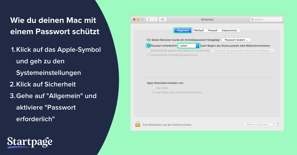 Mache deinen Mac privat! Hier sind Schritte, die du unternehmen kannst, um deine Privatsphäre zu schützen – von der Absicherung deines Macs bis zur Einrichtung von Startpage als deine Standard-Suchmaschine.