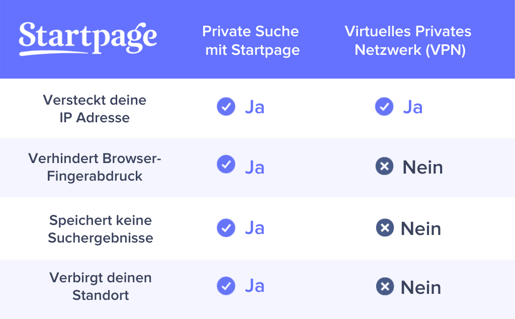Was ist der Unterschied zwischen Startpage und einem VPN?