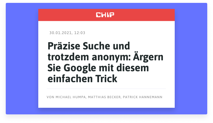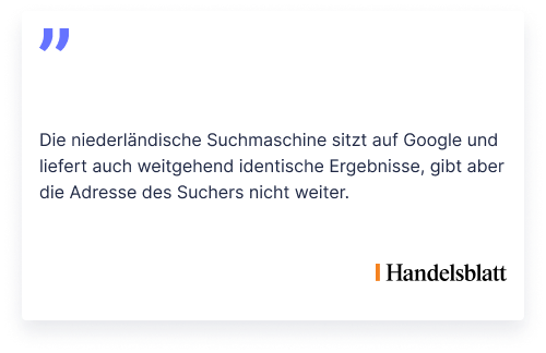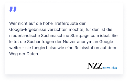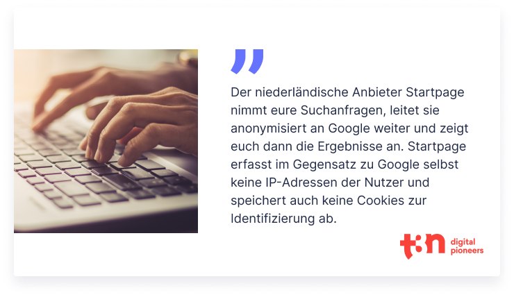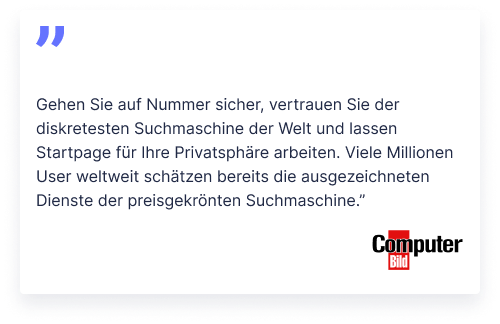 Wenn du mit Startpage suchst, bleibst du anonym. Erfahre mehr über Privatsphäre im Netz.