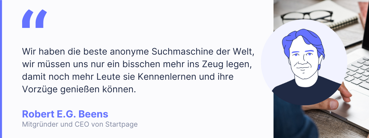 Als Robert E.G. Beens im Jahr 2005 eine rechtliche Prüfung seiner Suchmaschine Ixquick durchführte, stellte er entsetzt fest, dass eine Menge personenbezogener Daten der Nutzer gespeichert wurden. Besorgt über die alarmierenden Auswirkungen auf die Privatsphäre, die das Sammeln und Speichern so vieler persönlicher Daten mit sich bringt, beschlossen Beens und sein Mitgründer David Bodnick, etwas Grundlegendes zu ändern. Im Jahr 2006 gründeten sie die private Suchmaschine Startpage. In diesem Interview spricht Robert E.G. Beens, CEO und Mitgründer von Startpage, über seine Motivation, die diskreteste Suchmaschine der Welt zu schaffen.