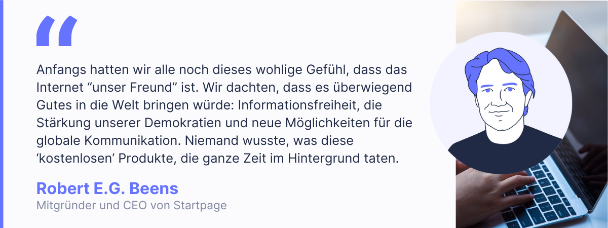 Hallo Robert. Die Gründungsgeschichte von Startpage ist auch eine Erinnerung an deinen persönlichen Wendepunkt in Sachen Privatsphäre. Kannst du uns ein bisschen mehr darüber erzählen?