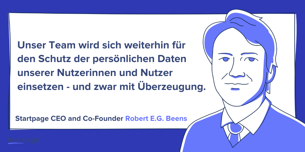 Unser Team wird sich weiterhin für den Schutz der persönlichen Daten unserer Nutzerinnen und Nutzer einsetzen – und zwar mit Überzeugung. Jetzt, mehr denn je zuvor, braucht die Welt eine Suchmaschine, die qualitativ hochwertige Ergebnisse ohne Tracking bietet! Das ist eine Aufgabe, hinter der wir stehen und für die wir kämpfen.