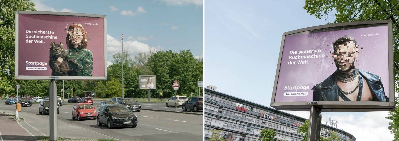 Startpage worked with Foundry, a creative agency based in Berlin, for the creation and production of the campaign. “When I search the internet for special dog food for our aging agency dog I get ads for dog coffins the next day. Startpage offers users the promise of surfing without worrying about trackers, data collection, and privacy breaches. It’s a promise we’ve translated into a campaign slogan in short, clear words: “Your search. Your thing.” Concise imagery with pixelated faces and provocative headlines highlight the benefits of private search without many words. Unusual locations that other brands would rather not venture into attract additional attention. We are sure that with the combination of suitable content and measures, we can sustainably support Startpage in its mission for more privacy on the Internet.” says Sacha Moser, CEO of Foundry.
