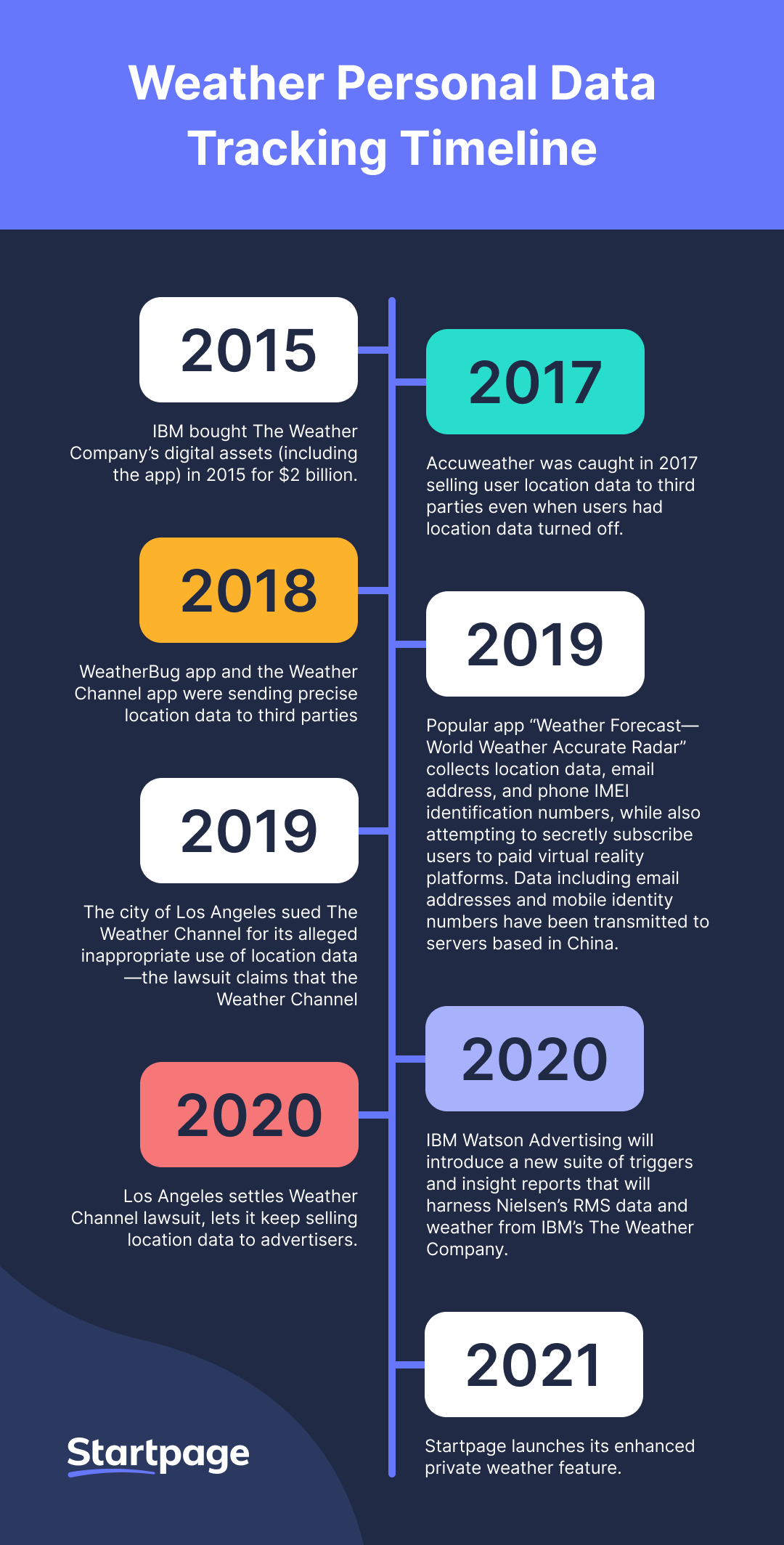 - 2020 Los Angeles settles Weather Channel lawsuit, lets it keep selling location data to advertisers.