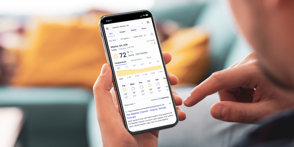 To try out a private weather search simply enter “weather in X city” or “weather in zip code.”