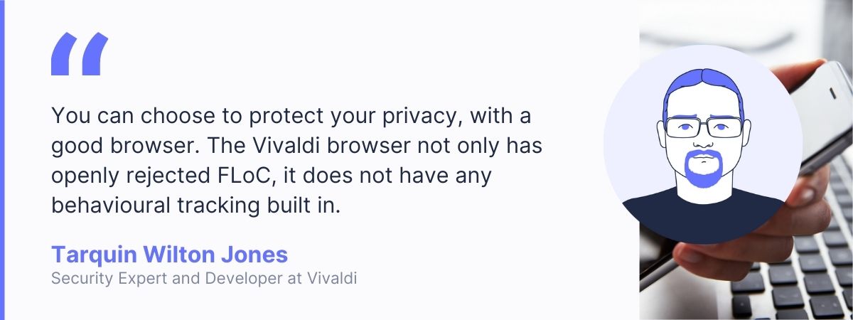 You can choose to protect your privacy, with a good browser. The Vivaldi browser not only has openly rejected FLoC, it does not have any behavioural tracking built in. It also does not include any built-in profiling ad service. And, yes, I might be partial, since I work for this company, as we share common ethics and values. I choose to work for Vivaldi, because they stand up for what is right. Our privacy policy is very clear: Vivaldi does not track you.