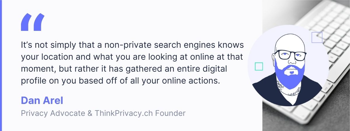 What becomes worrisome here is that most people don’t know the full extent of their information being captured, stored, and sold. It’s not simply that a non-private search engines knows your location and what you are looking at online at that moment, but rather it has gathered an entire digital profile on you based off of all your online actions.