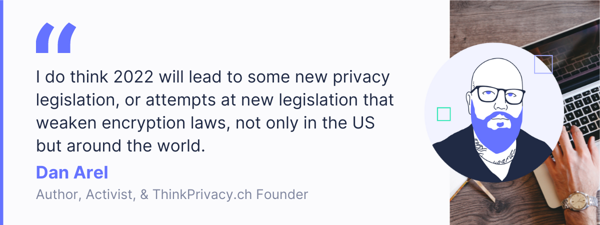 To get the ugly out of the way, I do think 2022 will lead to some new privacy legislation, or attempts at new legislation that weaken encryption laws, not only in the US but around the world. Governments of all kinds hate the fact that citizens can communicate and share information and that they have no access to said data. Companies like Proton Mail have been targeted by their governments for data on activist, and Signal, the popular end-to-end encrypted messaging platform saw a handful of attempted warrants on user information.