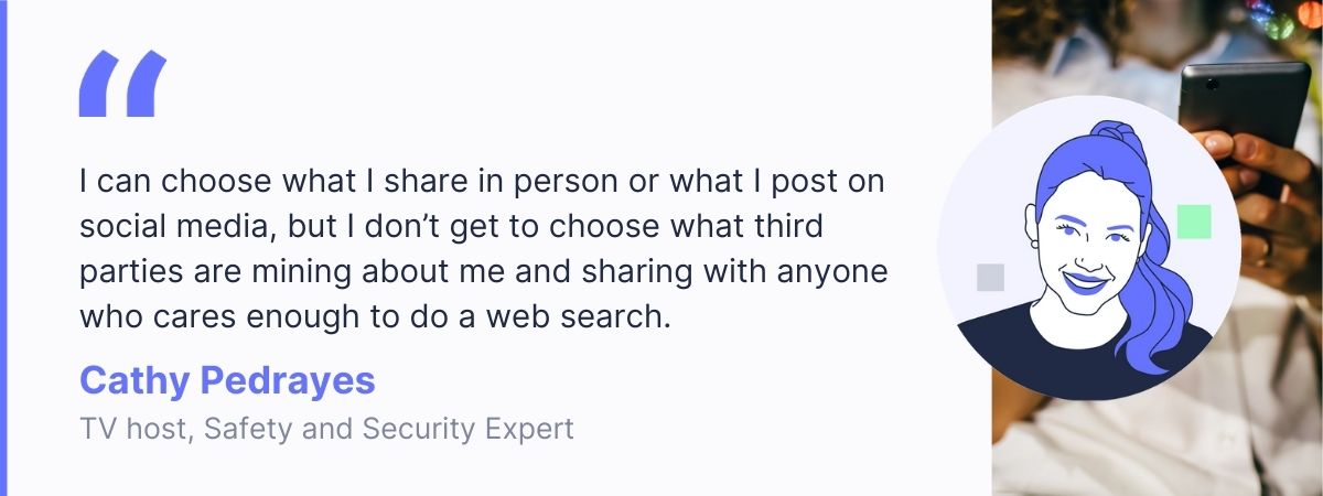 Cathy Pedrayes: It’s about controlling what information is public. I can choose what I share in person or what I post on social media, but I don’t get to choose what third parties are mining about me and sharing with anyone who cares enough to do a web search. It’s about safety and it’s a fundamental human right.