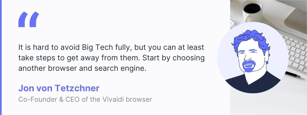 Jon von Tetzchner: We understand that users feel that they are locked into Big Tech. Part of that is that they offer services that you need to log into, that you may like. We are offering some important solutions that can help you get away from Big Tech.