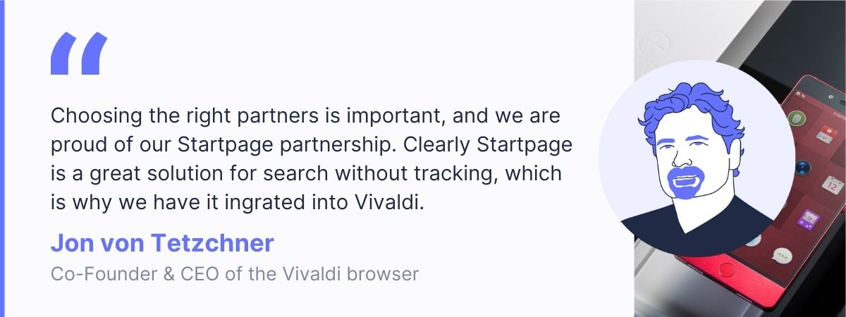 Jon von Tetzchner: Choosing the right partners is important, and we are proud of our Startpage partnership. Clearly Startpage is a great solution for search without tracking, which is why we have it integrated into Vivaldi.