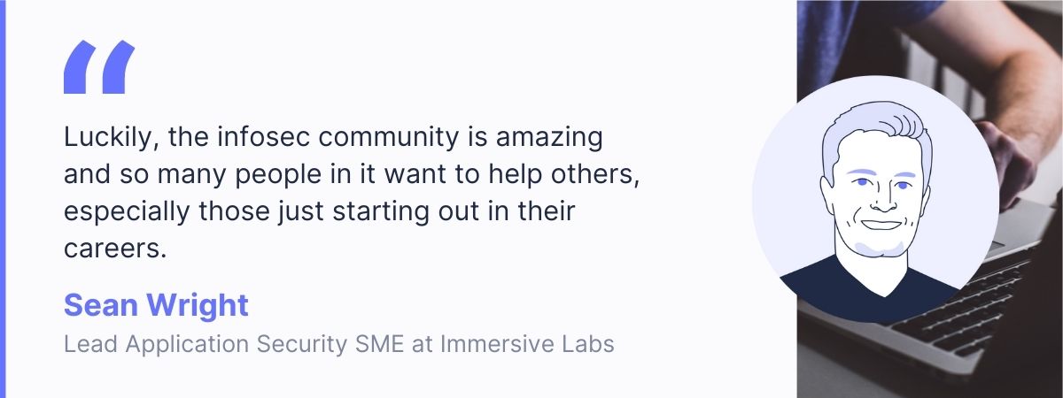 Sean Wright: Get involved! Get a Twitter account, get involved in discussions and make connections with people in the community. Attend local meetups and conferences, maybe even submit a talk to them. Also start your own blog. This will all help to create your personal brand and reputation in the community. Luckily, the infosec community is amazing and so many people in it want to help others, especially those just starting out in their careers. So, by using tools such as Twitter, and developing your personal brand, you will have plenty of people willing to help you out and get you your break in the industry.