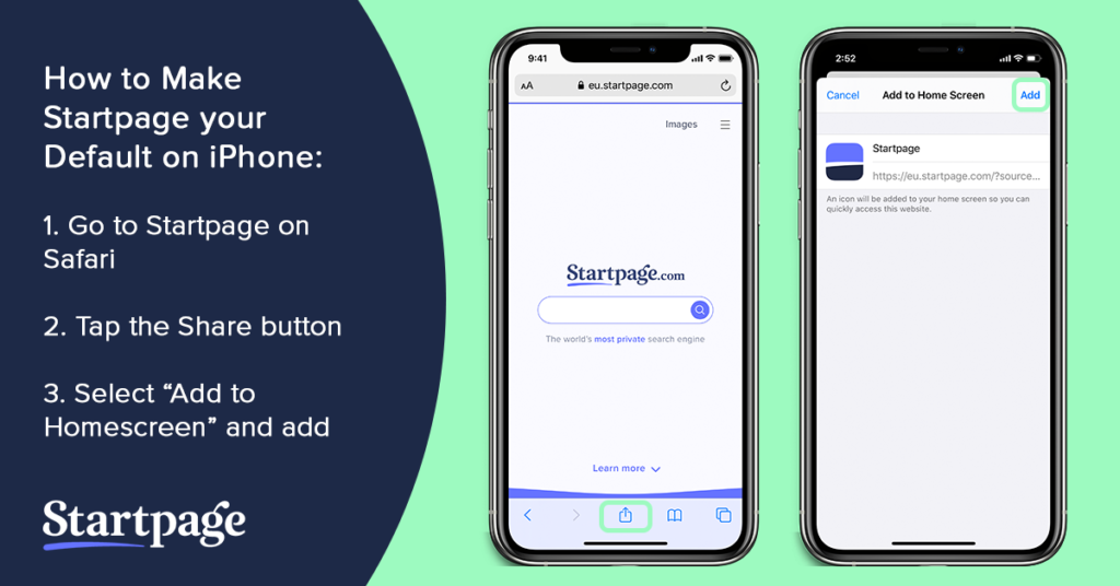 How to Make Startpage Your Default Search Engine: Safari > Share Button > Add to Home Screen > Add