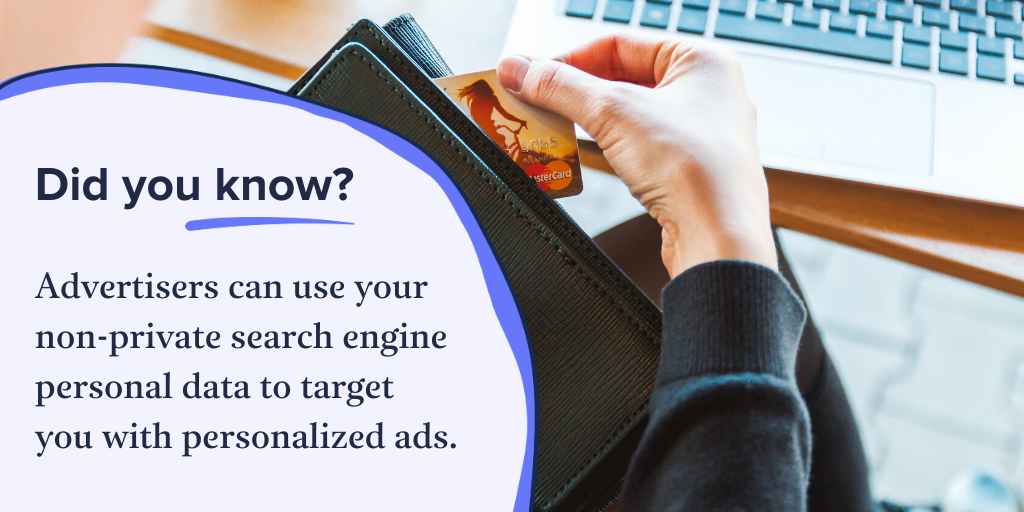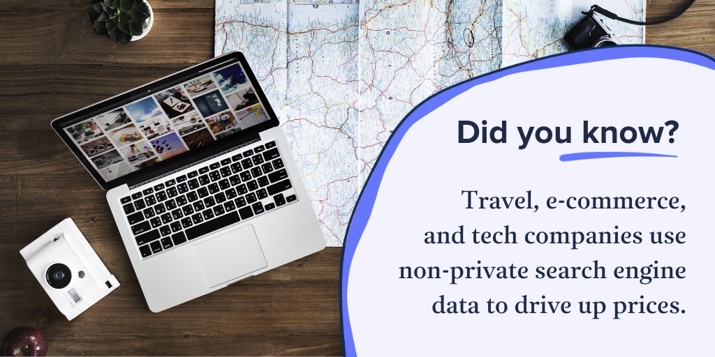 If you’re looking up budgeting tips, house loans, or even applying for a new job, your non-private search engine knows it. Financial companies can use non-private search engine data to create profiles on you and predict how likely you are to make a payment on time. (https://www.startpage.com/blog/startpage-articles/will-your-search-history-affect-your-credit-score)