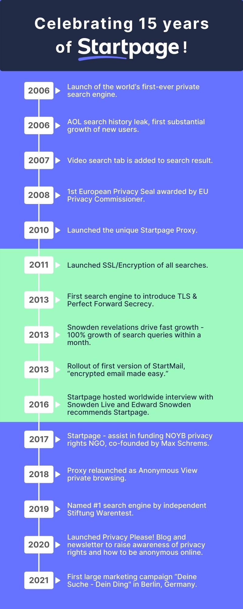 “Since privacy search engine Startpage embarked on its mission to protect its users in 2006, it has been a thought-leader in privacy innovation. In the past 15 years the internet has become an increasingly hostile place. Now more than ever people need clever alternatives like Startpage to help protect their online privacy.” – Robert E.G. Beens, Startpage CEO and Co Founder