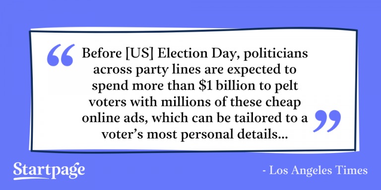 Politicians are just ONE of the groups that can access this valuable personal data, using it to target you with political ads during their campaigns. But perhaps even more concerning is that these voting influencers can “personalize” the content you see in your search results and your digital feed.