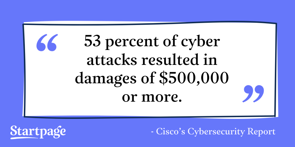 From Twitter bitcoin scams to robbing elections, hackers are using a number of tools to gain access to sensitive personal data and capitalize on it at the expense of unsuspecting folks. And this is not a rarity. According to Cisco, “53 percent of cyber attacks resulted in damages of $500,000 or more.”