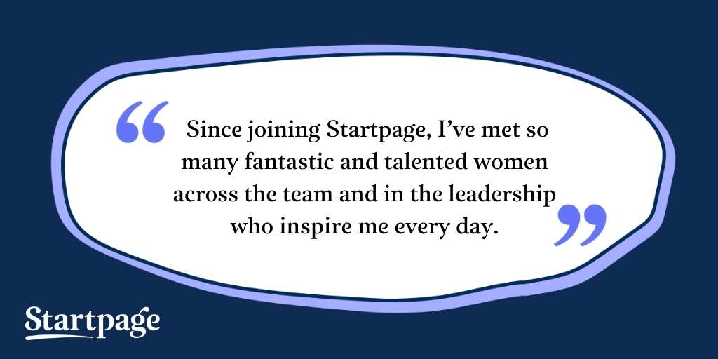 Alexandra: Throughout my career I’ve also mostly had male bosses – some of whom have been incredibly supportive, taught me a lot and inspired my path. But I was fortunate to grow up with a lot of strong, female role models around me. And actually, since joining Startpage, I’ve met so many fantastic and talented women across the team and in the leadership who inspire me every day.