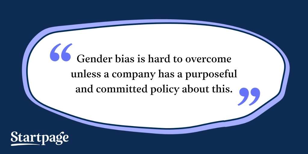 Sue: I used to sell paper products for an internationally known company in the 90’s and did well. When I moved to a different city and tried to get a similar job, I was told by the male sales manager that he didn’t hire women because women always used sex to sell. (His bias was that he had issues with women and sex). I was so mad and talked to the company president but he didn’t change the policy so I didn’t get the job. I’d like to challenge the gender bias of women in tech that we’re not as smart or capable as men. There are brilliant women who work with Startpage and know so much about tech and they inspire me to learn more. If only men were in tech, I’d be less inclined to think I could learn about it!