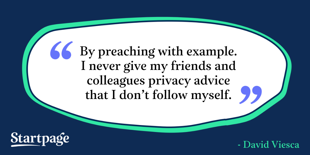 “By preaching with example. I never give my friends and colleagues privacy advice that I don’t follow myself.” – David Viesca