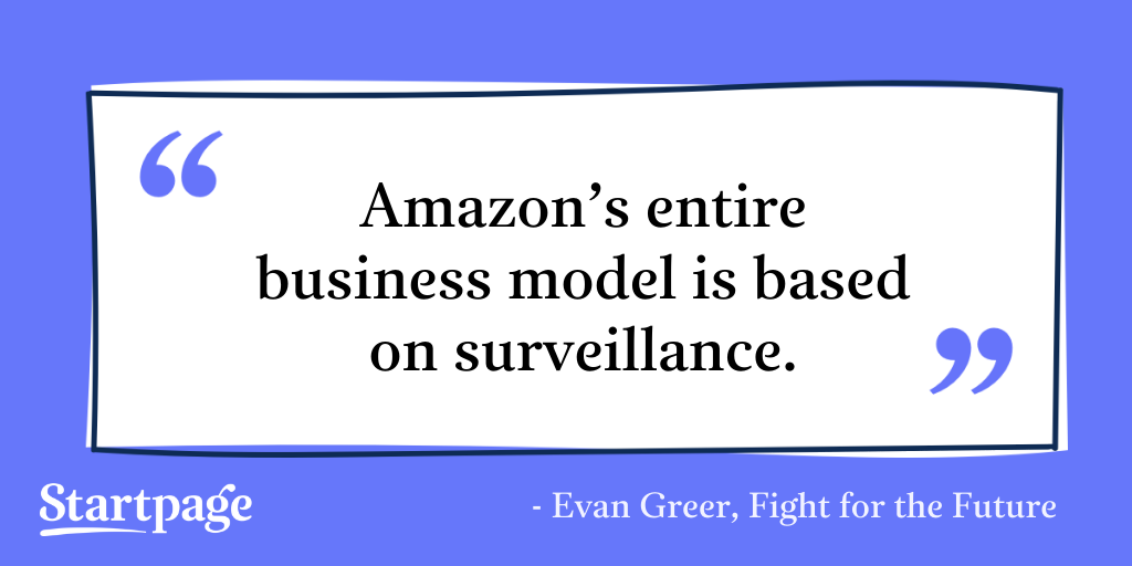 But what does this have to do with your personal privacy? Amazon doesn’t operate in a vacuum. “Amazon’s entire business model is based on surveillance,” said Evan Greer from Fight for the Future. When you shop on Amazon, you’re providing a wealth of personal information: online and purchase activity, location, contact information, credit score, and more.